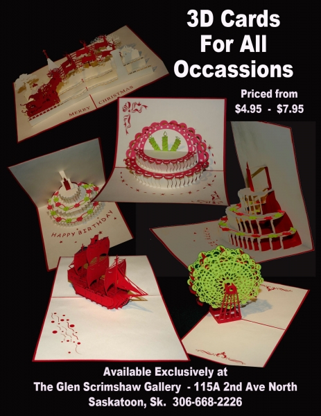 These 3D note cards are only available in Saskatoon at our Gallery.